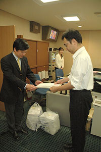 ■6月4日、48,588名の署名を持参(コアメンバー杉山精一)、陳情趣意書を厚生労働省の瀧ヶ平仁大臣付に手渡す。 |