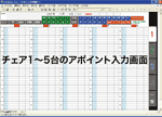 - 一日が1画面のため各チェアの予約状況が見渡せます(17インチ以上のモニタ推奨)。