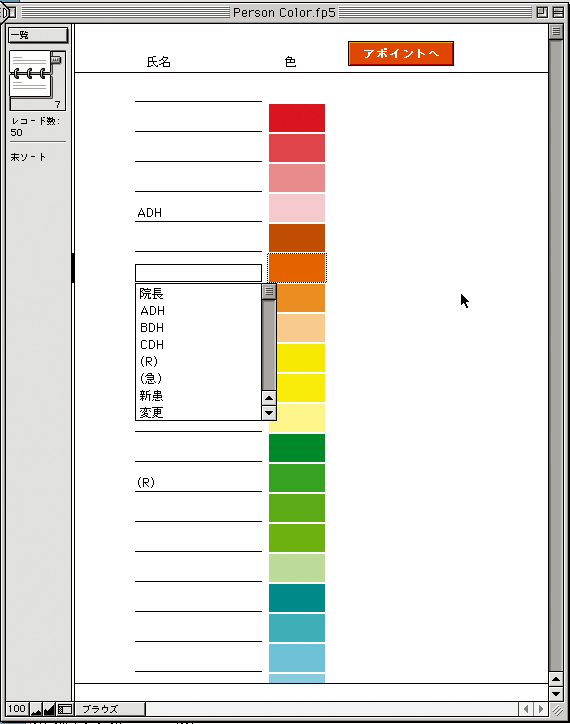 - 担当者別カラーが設定可能で、患者さん別の担当者が一目でわかります。