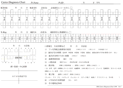 ヘルスケアミーティング2009で配布したICDAS診査に利用できる診査チャート記入用紙です。