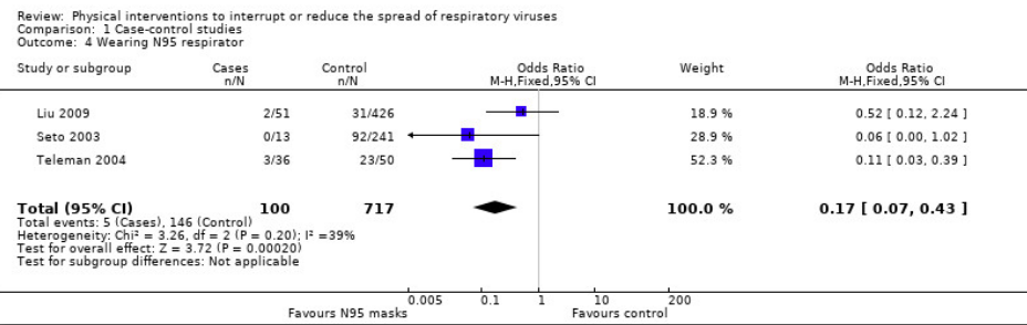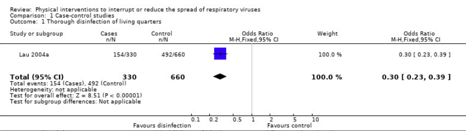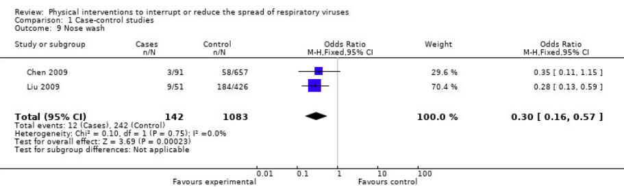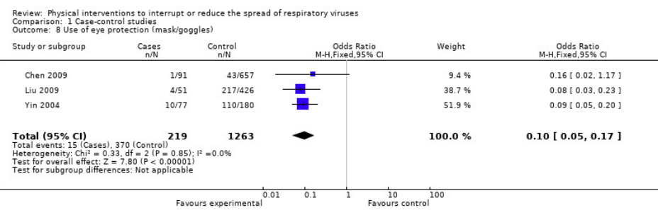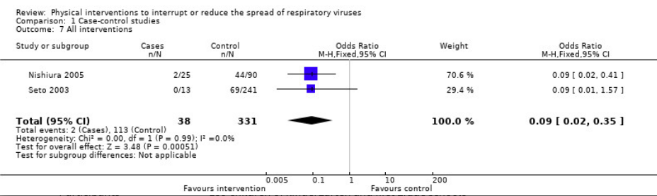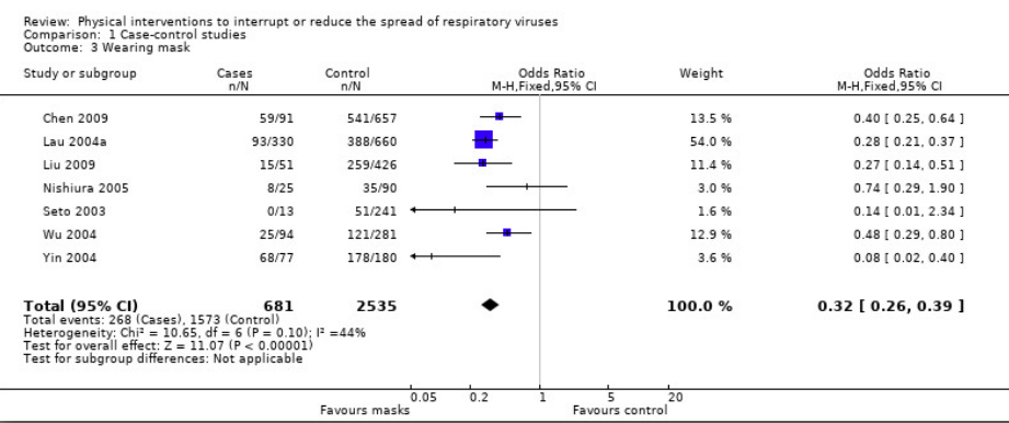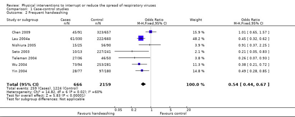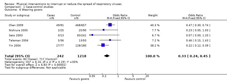 各種感染防御策の効果(Jefferson,2011)のForest plot