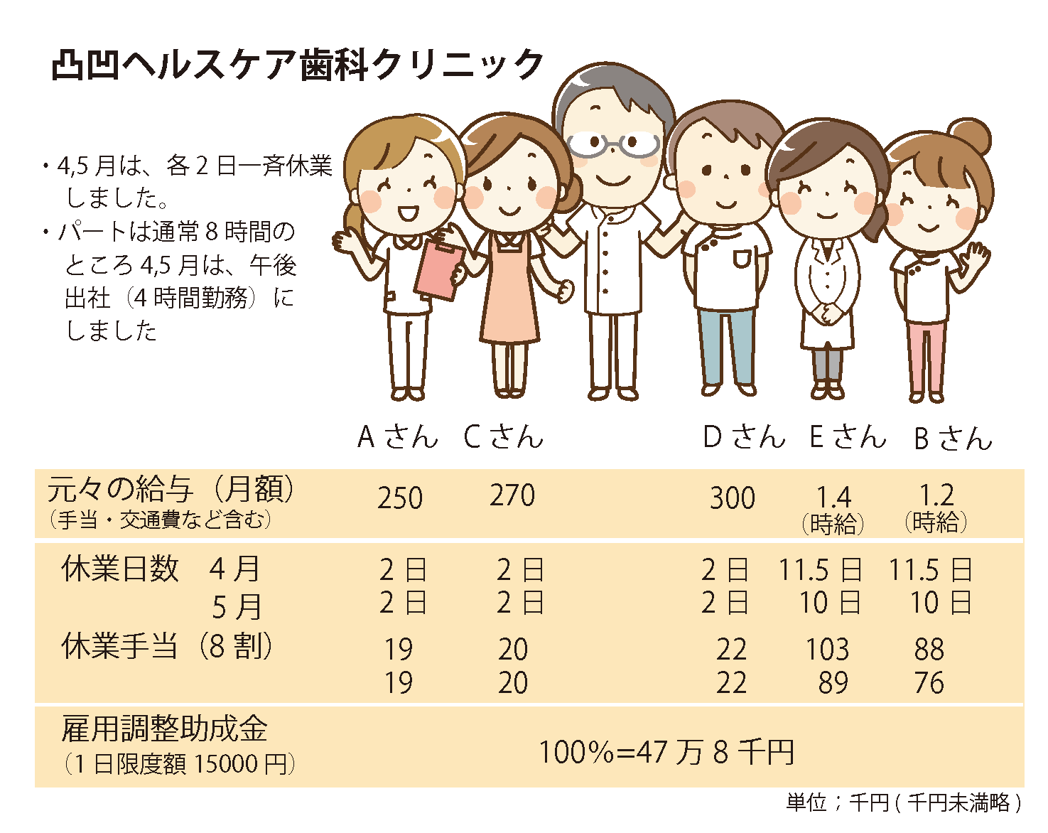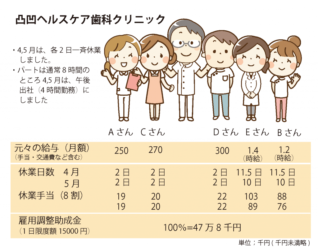 4,5月に歯科医院の診療時間の短縮や休業、スタッフの休業、とくにパートさんの勤務時間が減った医院は、少なくないと思います。その割に、雇用調整助成金を受けたという院長の話はあまり耳にしません。「パートの勤務時間が減った分は給料を払っていないから助成金はもらえないだろう」、「もう終わってしまったことだから遡って申請はできないだろう」、「どうせ1日の休業補償の限度額が低いので、たいした金額にならないだろう」。これはぜんぶ誤解です。従来、雇用調整助成金は、労務コンプライアンスの審査が厳しい、手続きが繁雑、用意しなければならない書類が多い、その割に給付率が低く、1日の休業補償の限度額(8330円)もあって、得られる助成金が少ないので、不況期の大規模工場の休業のようなものにしか使われてきませんでした。そのため、ほとんどの社会保険労務士が、雇用調整助成金の事務経験をもちません。今回、事後申請が認められ、必要書類が半減し、手続きが簡素化され、限度額が倍増したため、社会保険労務士に声がかかるのですが、なかなか申請数が伸びません。そのため、政府は、次々に申請条件を緩和しており、申請を検討する人が、その情報に振り回されています。