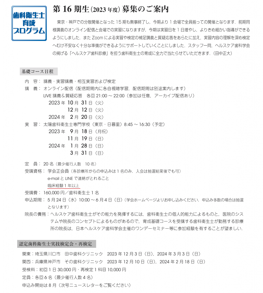 第16期 歯科衛生士育成プログラム