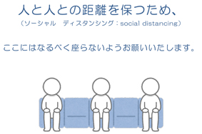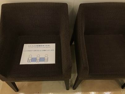たるみ歯科では、待合室の椅子に、「人と人の距離をあけるため、ここは座らないで」というメッセージをラミネートして椅子に貼っています。