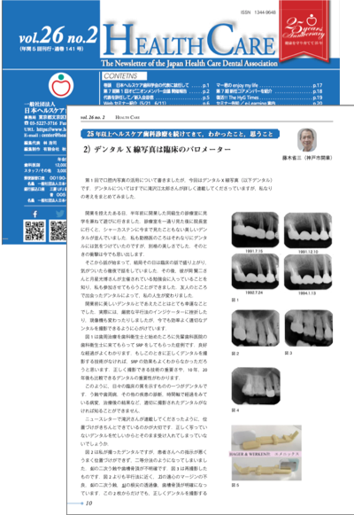 う蝕も歯周病も揺れ動くバランスの中で進行や停滞を繰り返す疾患です。大事なのは変化を見逃さないこと、歯槽骨の吸収は始まっていないか、視診で確認できない隣接面の状態は大丈夫か、歯髄の反応が根尖に現れていないか、このう蝕は象牙質に及んでいないか、縁下歯石は? Hidden Caries は? そのためには一定の間隔でエックス線撮影を行うことが必要と考えています。
