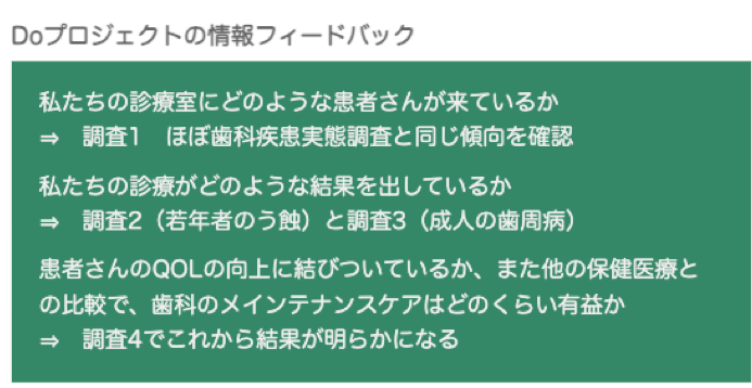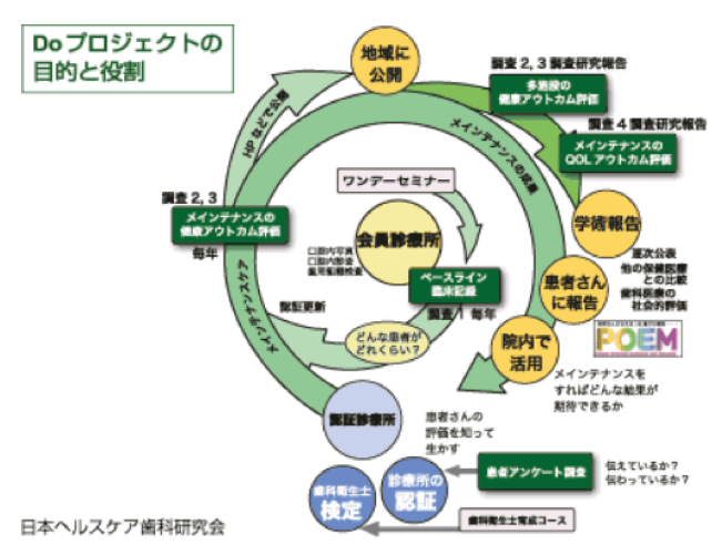 臨床の記録をとって、それを振り返る。Doプロジェクトは、それを学会レベルで組織的に取り組むプロジェクトです。その主な担い手は、健康を守り育てる「 認証診療所」です。
