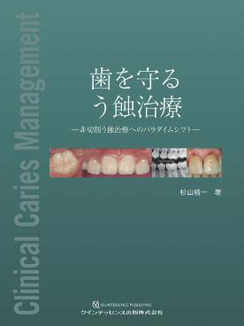 その名も「歯を守るう蝕治療」.そもそも論ですが,皆さんはう蝕を治療していますか? う窩を治療していますか? う窩を治療しているだけの認識ですと,この本のタイトルの意味すら理解できないかもしれません.う蝕を治療していることを念頭におき,う窩治療を行うと,患者さんと接している声掛けも変わってきます.副題には「非切削う蝕治療へのパラダイムシフト」とあります.つまり,う蝕治療は切削以外の方法もたくさんあります.